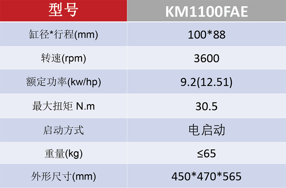 型號:KM1100FAE 功率:9.2KW/ 12.51HP 排量:0.691L