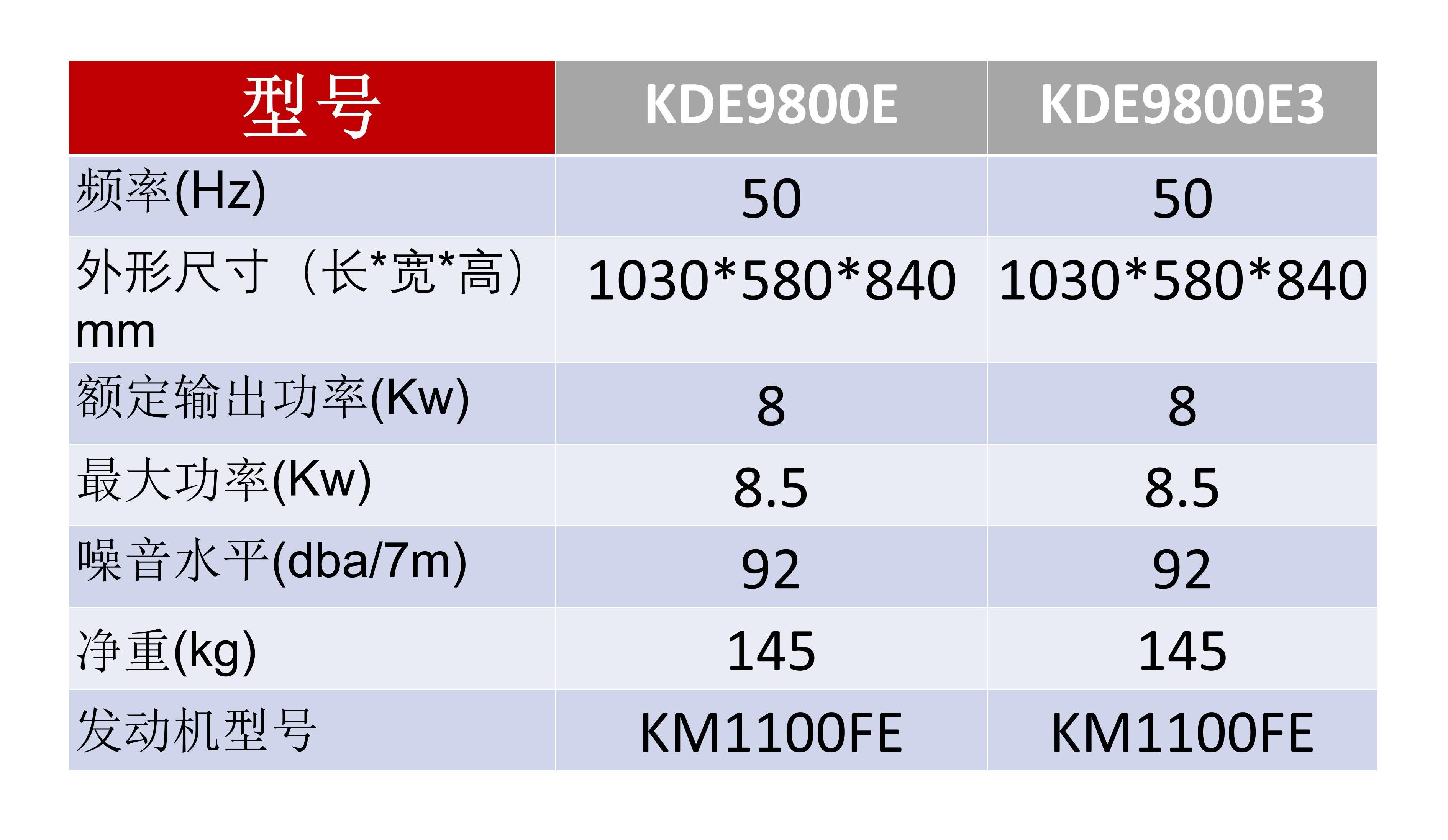 型號:KDE9800E 功率:8KW 發動機型號:KM1100FE